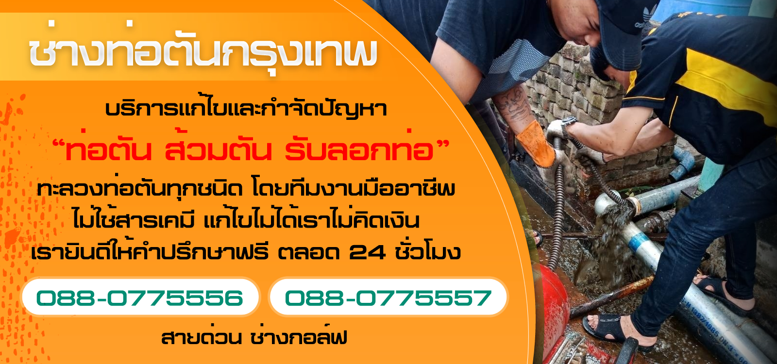 ช่างท่อตันกรุงเทพ เราคือทีมงานให้บริการงานแก้ไขปัญหา ท่อตัน ส้วมตัน ท่อน้ำทิ้งอุดตันทุกชนิด โดนทีมงานมืออาชีพ พร้อมให้บริการการแก้ไขปัญหาอย่าง สะดวกรวดเร็ว ไม่เสียเวลา และประหยัดค่าใช้จ่าย เรามีเครื่องที่ทันสมัย ที่เรียกว่า งูเหล็ก สำหรับ งานทะลวงท่อทุกชนิด โดยไม่ต้องทุบไม่ต้องรื้อ เราสามารถทะลวงท่อแก้ไขจุดที่อุดตันได้ อย่างรวดเร็วทันใจ ทีมงานยินดีให้คำปรึกษาก่อนฟรีตลอด 24 ชั่วโมงสายด่วนสายด่วนช่างกอล์ฟ